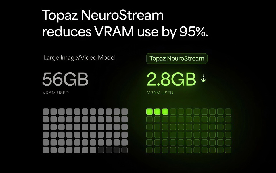 Designed as foundational technology, NeuroStream will not be limited to only Topaz Labs models in the future, and has the power to change local AI model use across the entire image and video industry.