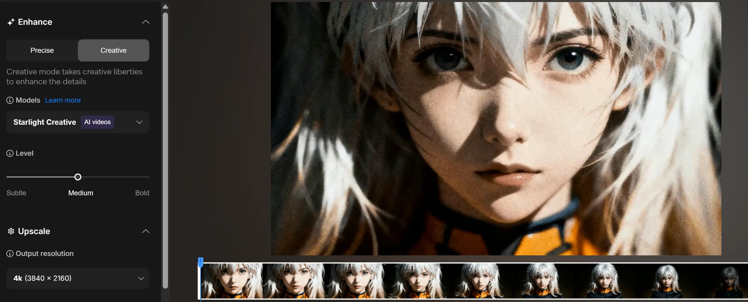 For videos needing only a boost in resolution, Precise upscaling can preserve the content and detail found in the original video while increasing resolution to 4K.